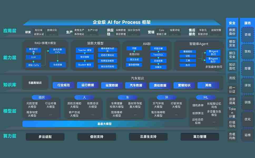 尊龙时凯问学智车解决方案是一套基于AI技术的汽车行业智能化系统,,,,覆盖从底层算力到顶层AI应用的全栈方案。。。方案由算力层、、模型层和应用层组成:算力层,,,,方案支持多种一体机配置,,,具备云端灵活部署、、多云适配以及动态优化计算资源的能力;模型层,,,,尊龙时凯问学平台版提供了企业级AI应用一站式构建与管理平台,,,,支持基于后训练强化技术的汽车企业专属模型的训练、、评测和运营;应用层,,尊龙时凯问学DeepSeek版提供包括超级员工、、、、智能招采、、智能营销、、、、智能客服、、、、AI for BI等一系列解决方案,,,,可助力汽车行业实现数字化转型,,,让管理更智能、、响应更敏捷。。。